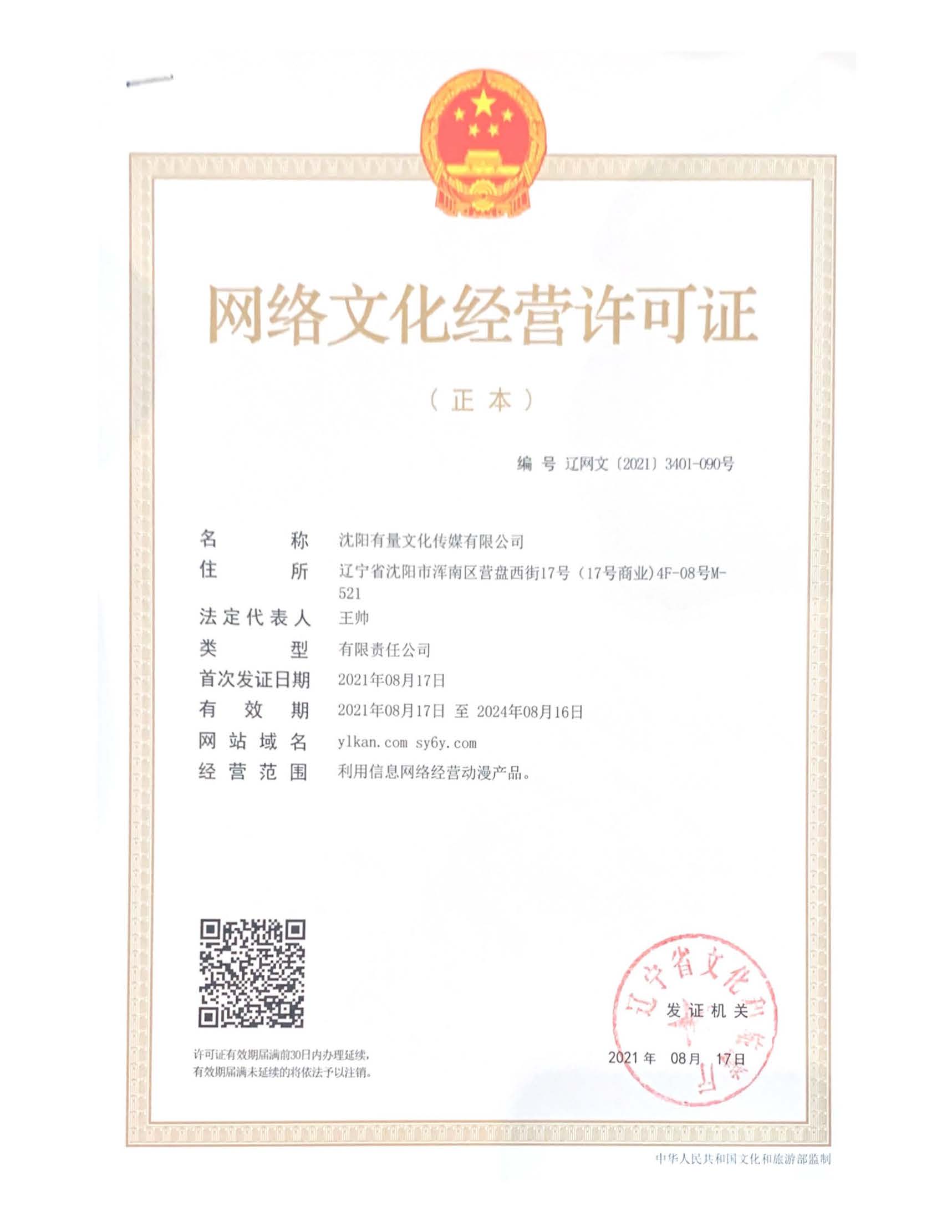 Copyright (C) 2022 沈陽(yáng)有量文化傳媒有限公司 公司備案號(hào):遼ICP備2021006768號(hào)-5 網(wǎng)絡(luò)文化經(jīng)營(yíng)許可證編號(hào) 遼網(wǎng)文(2024)3556-587號(hào) 營(yíng)業(yè)執(zhí)照